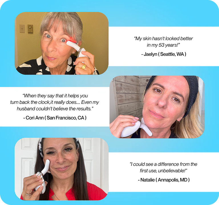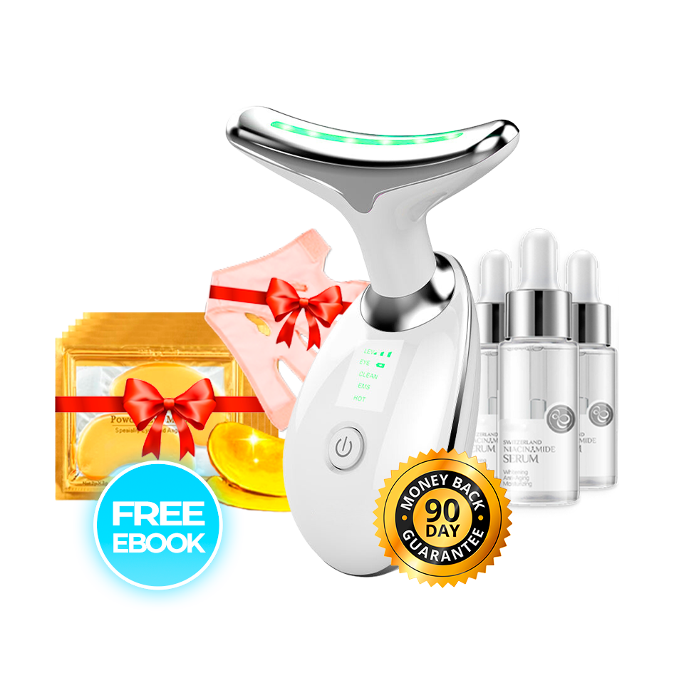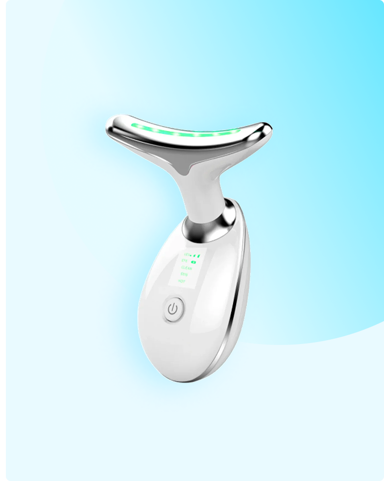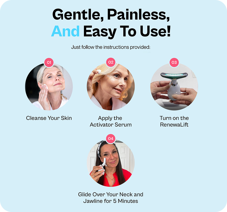 RenewaLift lifts and tightens saggy skin in the neck and jawline area using LED Therapy, Sonic Vibrations and Microcurrent for a more refreshed, youthful appearance